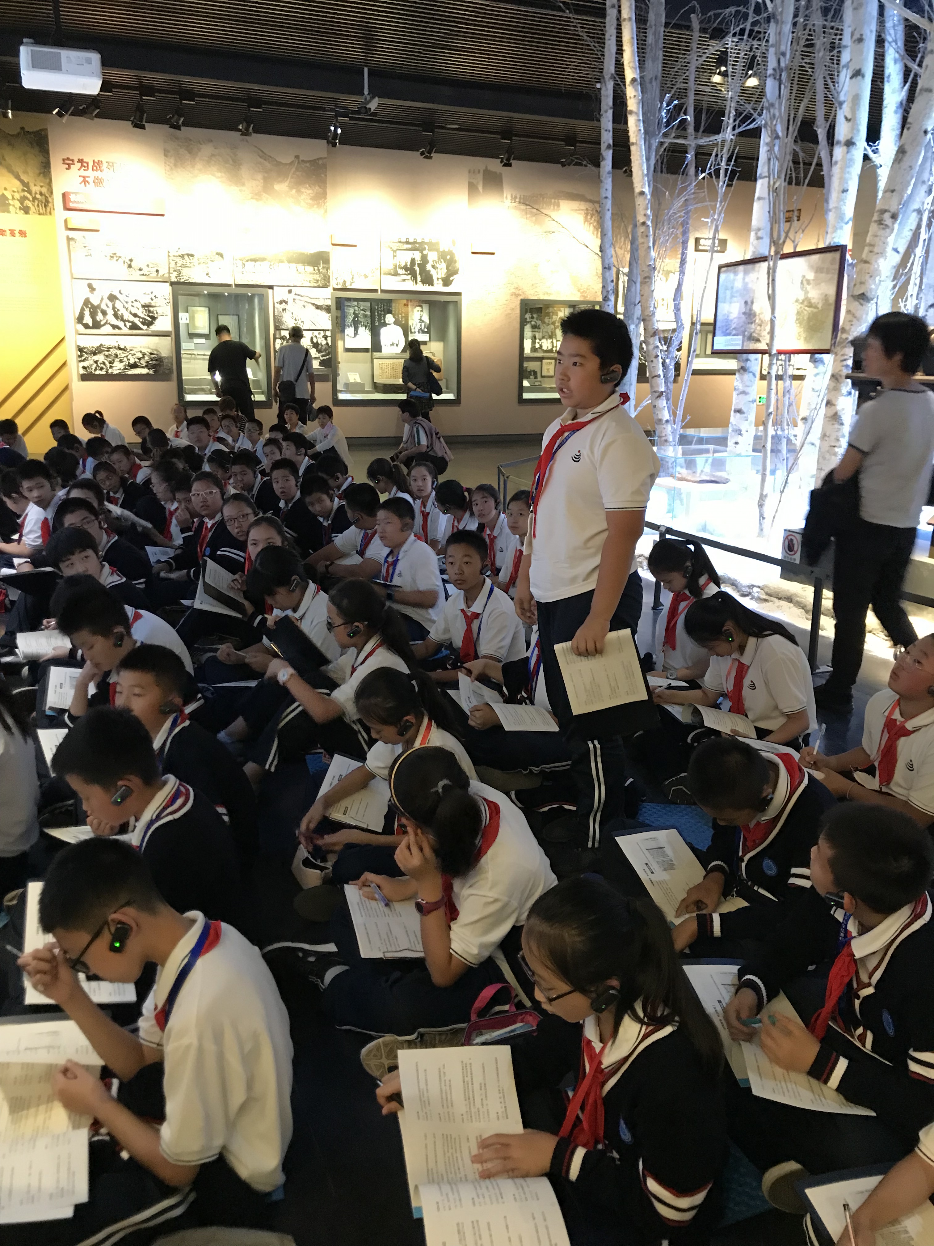 接下来,在抗战馆展厅的学习中,同学们主要参观了“局部抗战”展厅。在讲解员的讲解下,孩子们安静聆听、认真记录、积极回答问题。学习了中国人民的抗日战相关知识,并为日本法西斯的暴行而愤怒,为杨靖宇、赵尚志、赵一曼等烈士的大无畏精神而感动。